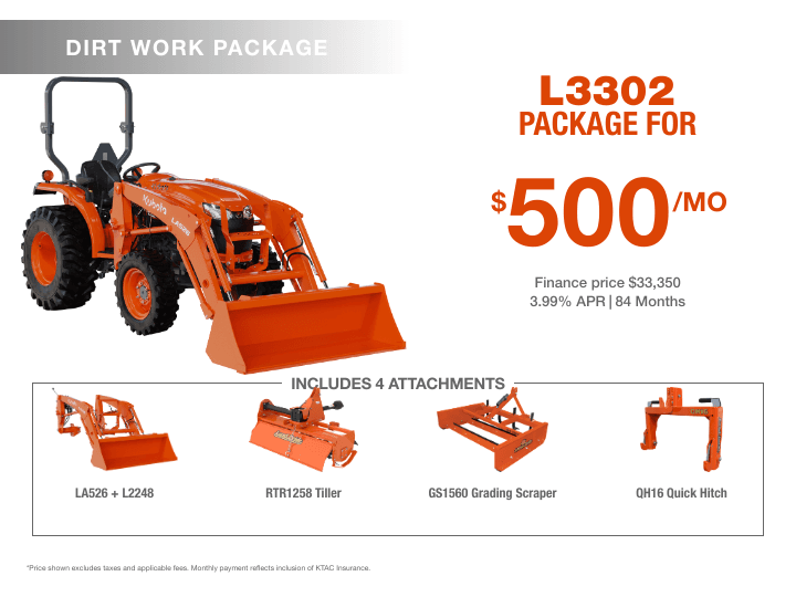 TAKE ADVANTAGE OF OUR EXCLUSIVE OFFERS ON SELECT KUBOTA PRODUCTS.