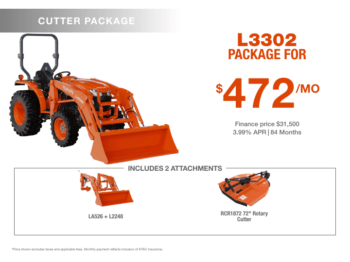 TAKE ADVANTAGE OF OUR EXCLUSIVE OFFERS ON SELECT KUBOTA PRODUCTS.
